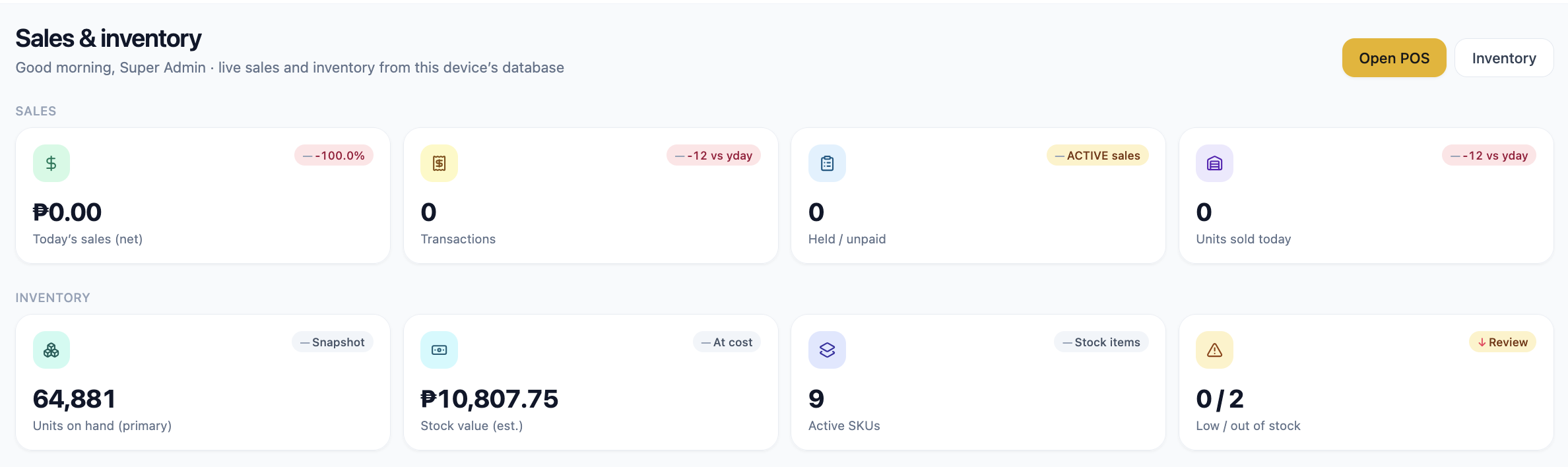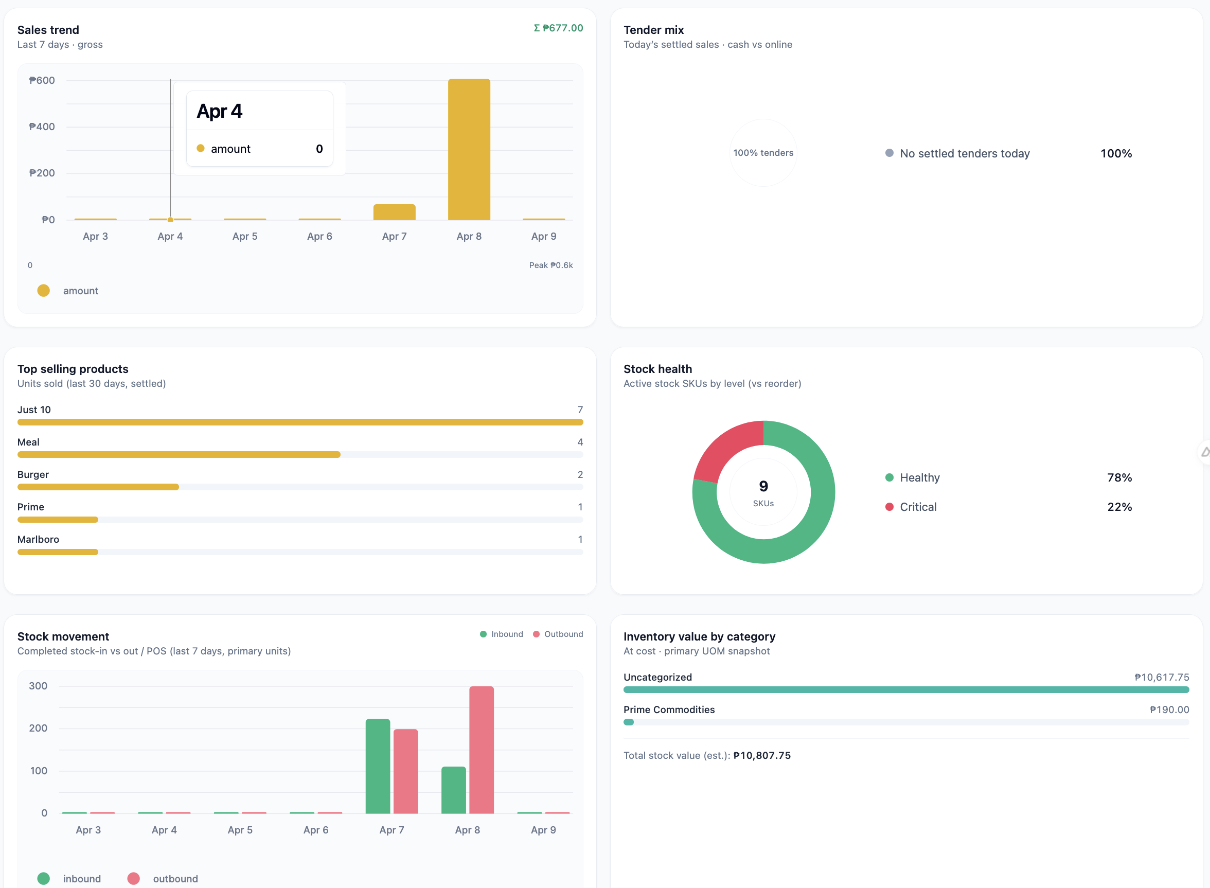 Whether you run one counter or a growing network of branches, BlancPOS keeps pace—deeper inventory and reporting when you need it, role-based access as your team grows, and a POS workflow that stays familiar as you expand.